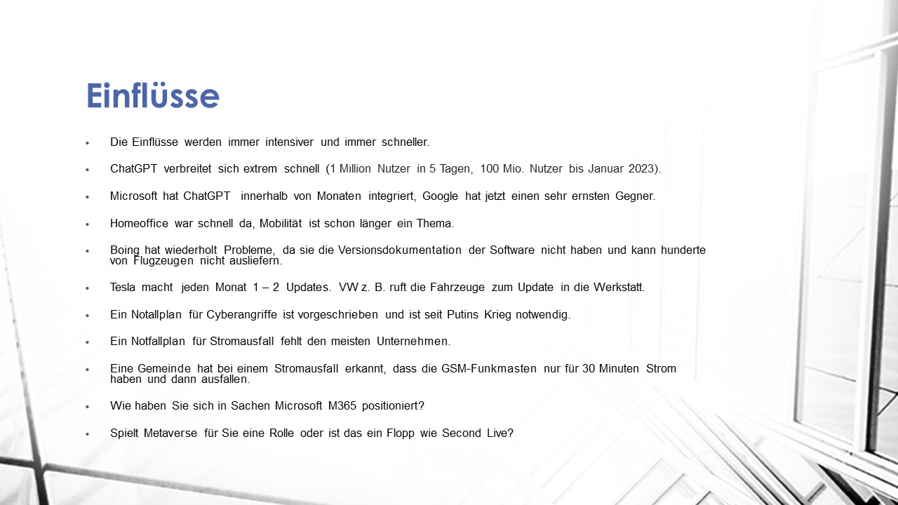 Die Einflüsse werden immer intensiver und immer schneller.