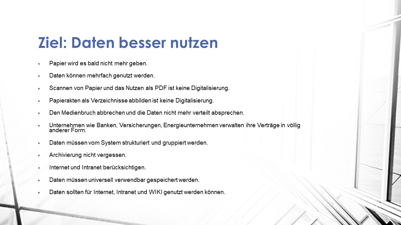 Unternehmen wie Banken, Versicherungen, Energieunternehmen verwalten ihre Verträge in völlig anderer Form.