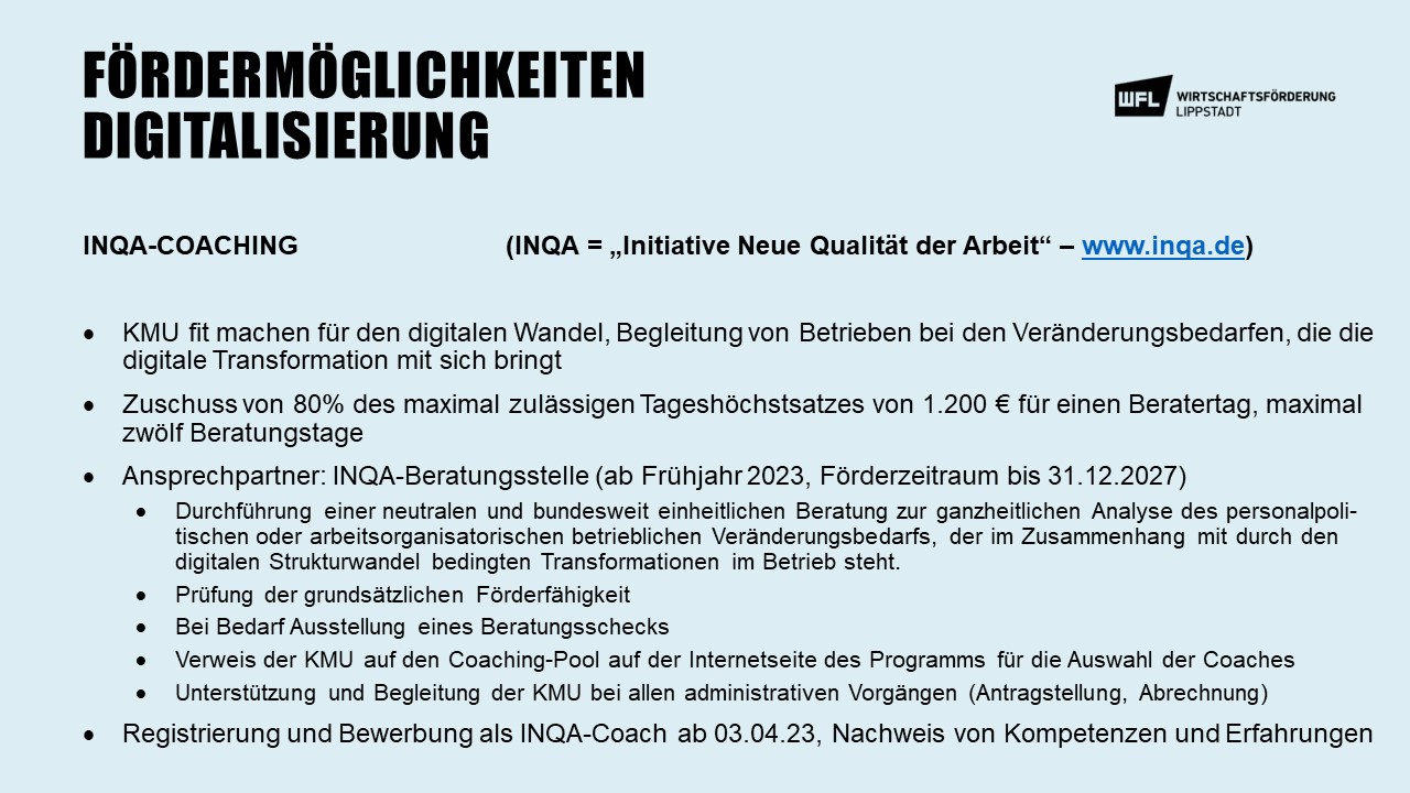 Ansprechpartner: INQA-Beratungsstelle (ab Frühjahr 2023, Förderzeitraum bis 31.12.2027)
